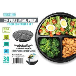 MEAL PREP 20 PIECE ROUND BLACK - 3 SECTIONS