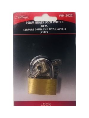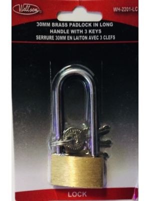 - (PLL-30) 30MM BRASS PADLOCK IN LONG HANDLE W/3KEYSKU - WELL-WH-2201-LCUPC No. - 063252373421Location - BAY 39B