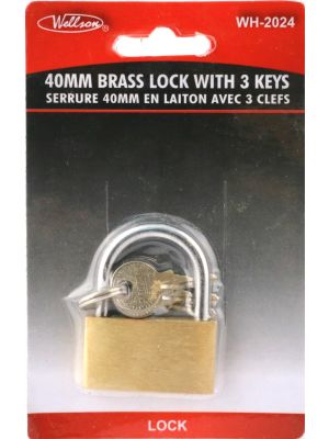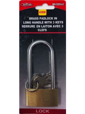 - (PLL-40) 40MM BRASS PADLOCK IN LONG HANDLE W/3KEYSKU - WELL-WH-2202-LC-1UPC No. - 063252363798Location - BAY 37C