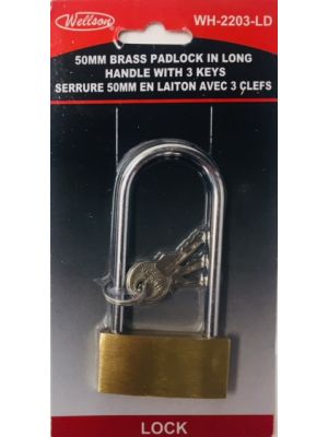 - 50MM BRASS PADLOCK IN LONG HANDLE W/3KEYSKU - WELL-WH-2203-LDUPC No. - 063252363804Location - BAY 41C