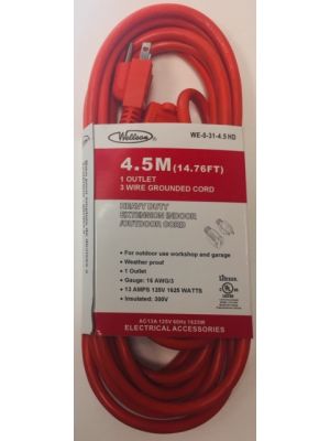 - 4.5M ELECT EXTENSION CORD H.D.SKU - WELL-WE-0-31-4.5HDUPC No. - 063252912668Location - BAY 1Add to Wish ListAdd to CompareAvailability - Out of StockPlease click to add to wishlistPieces in cart - 0