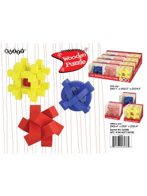 - WOODEN PUZZLE - ASSORTED 3 COLORS AND SHAPESSKU - MAXX-NV-06580UPC No. - 841437130782Location - BAY 26Add to Wish ListAdd to CompareAvailability - Out of StockPlease click to add to wishlistPieces in cart - 0