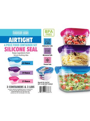 - 6 PIECE SQUARE FOOD STORAGE LOCKING LID - ASSORTED COLORSSKU - MAXX-NV-06769UPC No. - 841437133363Location - BAY 21Add to Wish ListAdd to CompareAvailability - Out of StockPlease click to add to wishlistPieces in cart - 0