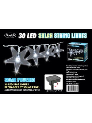 - 30 LED SOLAR STRING LIGHTS STARSKU - MAXX-NV-05639UPC No. - 841437115277Location - N/AAdd to Wish ListAdd to CompareAvailability - Out of StockPlease click to add to wishlistPieces in cart - 0