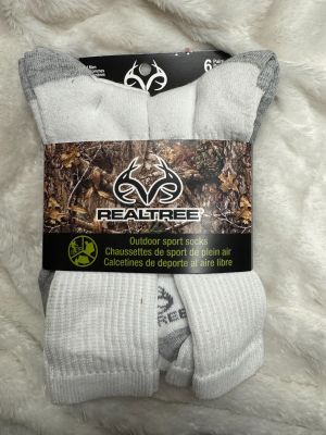 - REALTREE OUTDOOR SPORT SOCK BLK- WHT/GRY - 6 PK - SZ 10-13SKU - SAB-1011571RT180-WHTUPC No. - 628722114302Location - N/AAdd to Wish ListAdd to CompareAvailability - Out of StockPlease click to add to wishlistPieces in cart - 0
