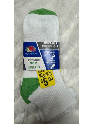 - FRUIT OF THE LOOM BOYS ANKLE -SZ- 3-9- 4 PK. MSRP $5.00SKU - REN-FRB10657Q4MUPC No. - 791606069637Location - N/A