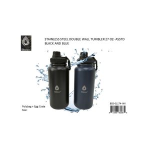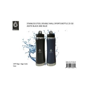 STAINLESS STEEL DOUBLE WALL SPORTS BOTTLE 25 OZ. - BLACK AND BLUE prepriced $9.99